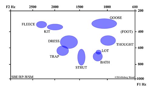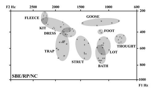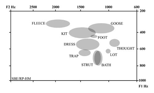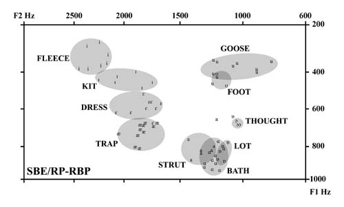 Deterding, David. 1997. The formants of monophthong vowels in Standard Southern British Pronunciation. Journal of the International Phonetic Association 27:47-55.