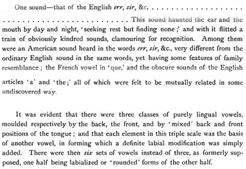 Bell’s revolutionary innovations were thus (1) the concept of central tongue positions in a continuum between front and back, (2) the concept of tongue height, and (3) the concept of spectrally significant small shifts of tongue position in any direction.