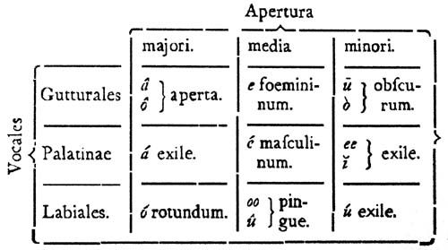 Figure 3. John Wallis’ (1653) presentation of the ancient throat-tongue-lip model