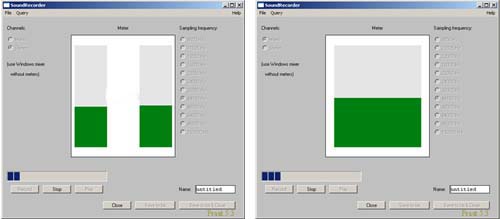 - The stereo recorder on the left, the mono recorder on the right.