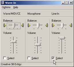 The source is selected from the recording section of the Windows Volume control: