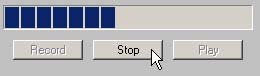 The recording progress bar (bottom left corner of the Sound recorders) comes on when recording is activated, and also shows how much of the Sound buffer has been filled. Recording halts automatically once the Sound buffer is full, but you still need to click the Stop button to continue working in the Sound recorder. The progress bar stays on until you start a new recording, and reminds you that you still have an active Sound object to listen to or to save.