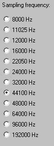 Select the sampling rate by clicking the appropriate button. The sampling frequency selected in the Praat Sound recorders is for both channels, so the selection is the same for both mono and stereo recordings.