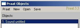 You can give a name to your new recording, in the name box (bottom right corner of the Sound recorder). This name will subsequently be used to identify the recording in the Objects list in the Objects window. The name “Untitled” will be used if you don’t provide a name of your own.