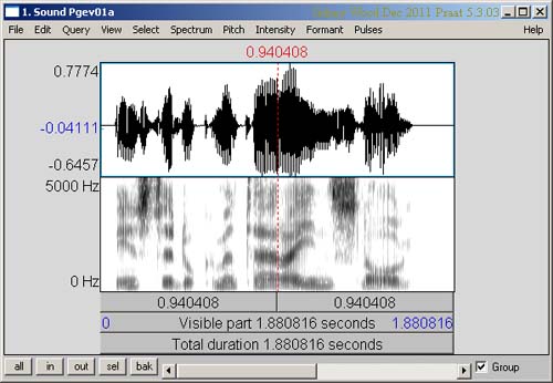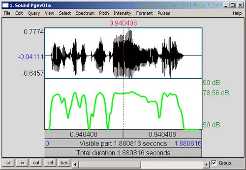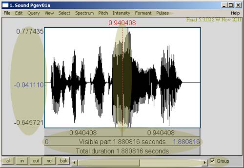 The Sound editor displays the waveform of a Sound object, and lets you select and view signal segments, play them back, zoom in on them, save them as files, cut/copy and paste them, and perform various analyses.