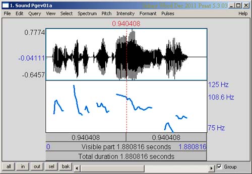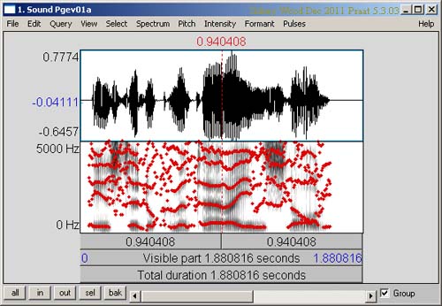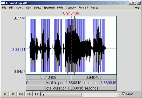 - An example of the voice glottal pulse display, superimposed on the waveform.