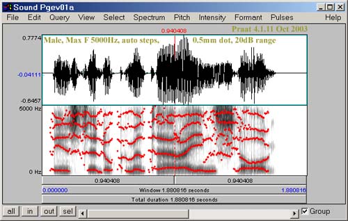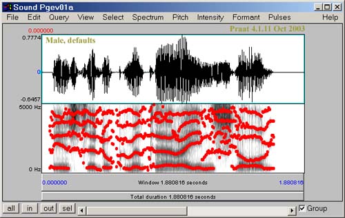 - A male and a female speaker are used to illustrate formant tracking in the Sound editor, the same samples that were used for illustrating spectrograms. Their utterances offer a good selection of vowels, sonorants, stops and fricatives that demonstrate the capabilities of formant tracking in Praat. The transcriptions you see were added later using an image editor, they are not available in the Sound editor.