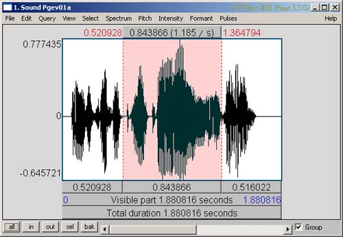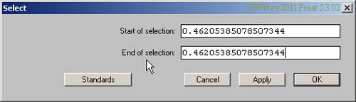 - Move the pointer to where the selection is to end, press [Shift] and left-click again; Praat completes the selection