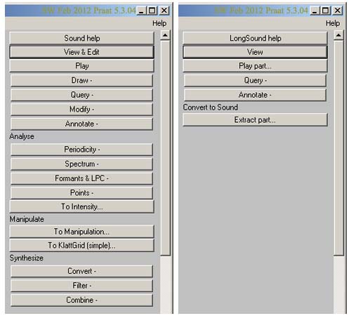 - These two pictures show you what you can do with a Sound object (left) and a LongSound object (right) in the Objects window:
