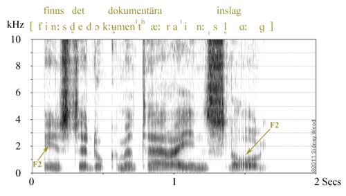 - All vowels can be can be characterized by F1 and F2. For example, look at the example spectrogram again, and compare the first and last vowels: